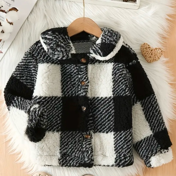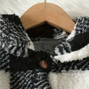New without tags black and white checkered jacket. Very soft and warm. Not lined. Buttons down the front.