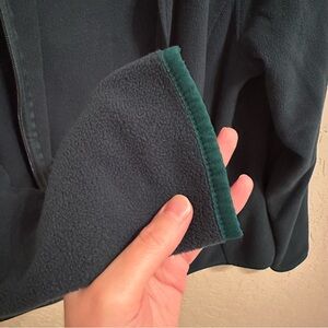 Soft fleece jacket with full zip. Ideal for layering. Comfortable and warm. Worn only a couple of times. Dark green color. Zippered pockets. Fits like a M/L