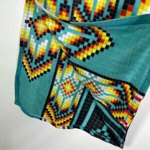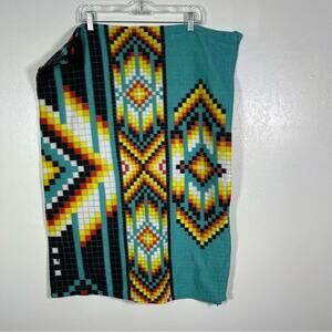 Fleece Lap Blanket, Turquoise Tribal Print. 32.5”x 48.5”. Excellent condition!