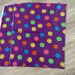 Fleece Multicolored Smiley Faces Home New Fabric Cut 63” X 32”