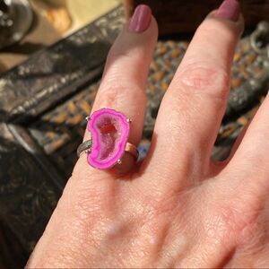 Fleece Pink Geode Sterling Silver Ring Size 6.5