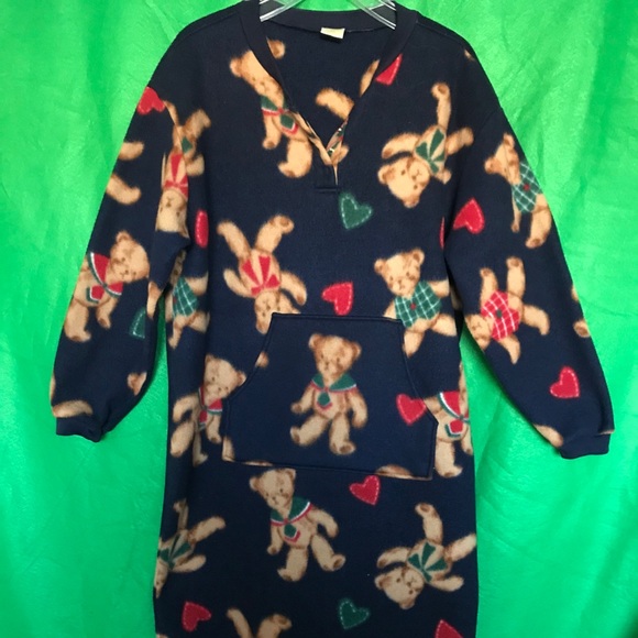 Adorable and warm Bear print fleece pullover robe. Sweatshirt style front pocket and snap collar. M/L is more like medium