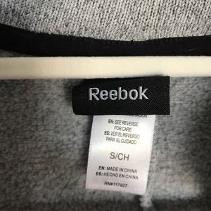 Grey with black piping. Zipper pockets and thumbholes. Very cozy warm! Barely worn.