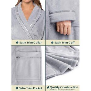 Fleece Robe For Women, Plush Warm Bathrobe Womens, Fluffy Soft Spa Long Robe