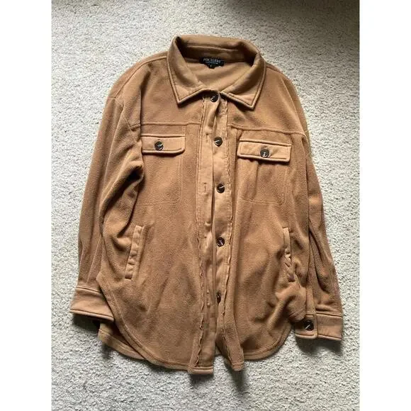 Oversized camel fleece button up shacket