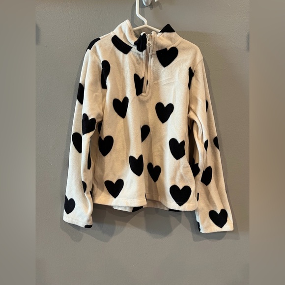 This soft fleece with a cute heart design is perfect for Valentine’s Day. It’s long sleeved and in very good condition!