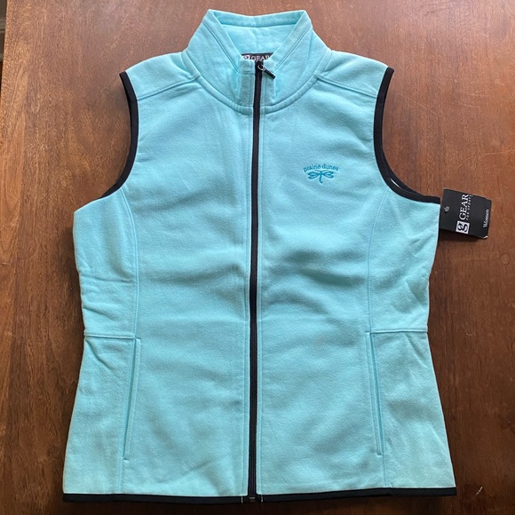 Women’s fleece vest featuring a full zip, 2 hand pockets, 2 internal pockets. 24 1/2 inches in length, 20 1/2 inches armpit to armpit. Stretchy and soft.