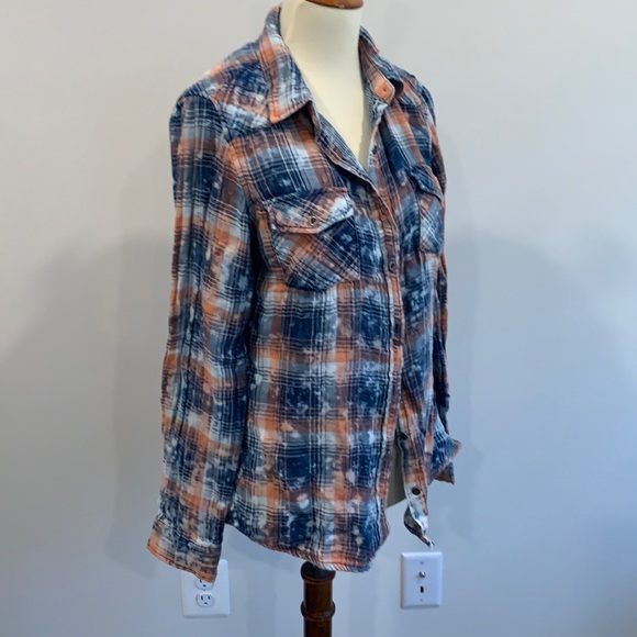 Distressed fleece button down