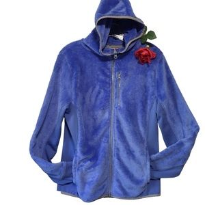 Fleece fuzzy cozy zip jacket fleece setpa blue hoodie full zip LG by SO EUC