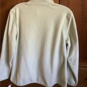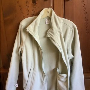 Light jade green fleece jacket (a little darker than photo shows). Pockets inside and out. 25 in. Long.