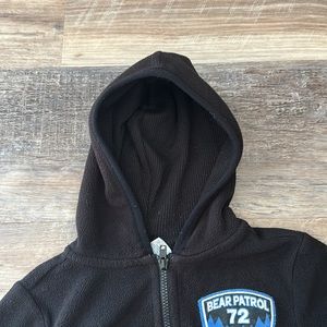 Gently used. Zipped fleece jacket with hood. Tiny amount of “fuzzies” in the hood.