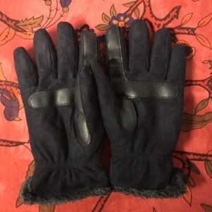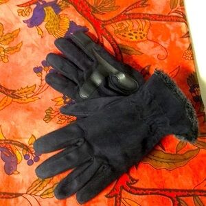 Fleece lined Suede Gloves Black Size Med Like new condition