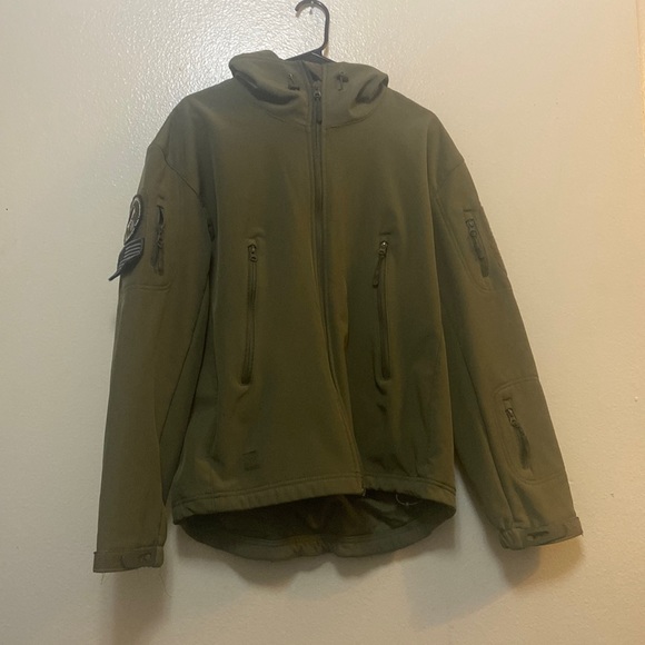 Army green jacket size large lots of pockets wind proof water proof