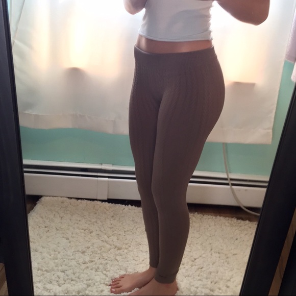🔸beige🔸super soft🔸Irish knit pattern🔸fleece lined🔸low rise leggings🔸never been worn🔸