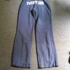 Fleece pants. Missing draw string and stain at the feet of the pants. Size medium
