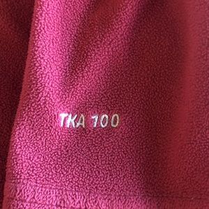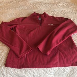 Size medium, deep pink, The North Face pullover. This is a slim fit and feels like a small. Worn condition, but still has a lot of life left.