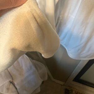 Brand new tags on white fleece pullover jacket with thumb holes