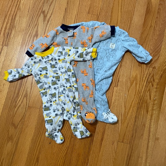 Fleece sleepers for newborn-3 month old. All Carter’s brands. Used but plenty of life left. From a smoke free, dog friendly home, washed in all free and clear.