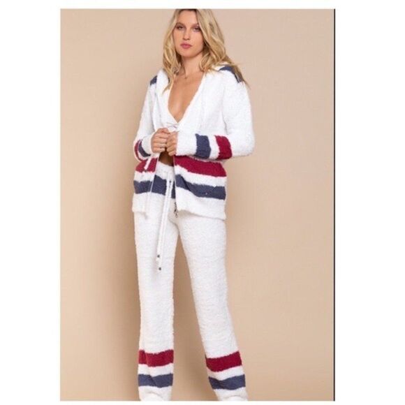 Super soft fleece zip up Hoodie with Contrast color stripe pattern.