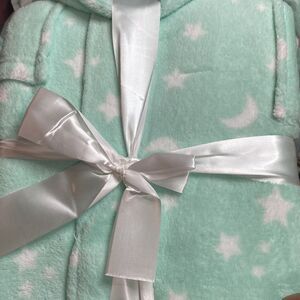 Warm & Cozy Fleece Robe with Eye mask Light Teal Green With White Stars ⭐️ and Moons 🌙 One Size Fits Most