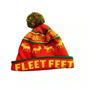 Fleet Feet winter running pom pom beanie 2017 moose orange hat