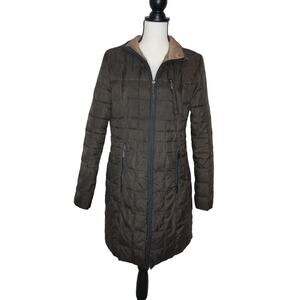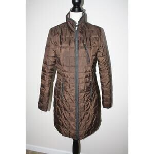 Fleet Street Puffer Knee Length Jacket Zip Up Brown Small Long Sleeve