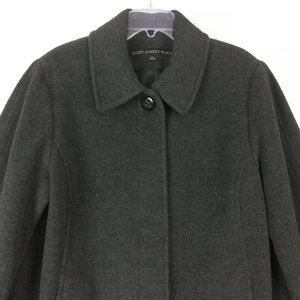 Fleet Street Wool Womens Coat A Line Charcoal Gray Single Breasted Plus 1X