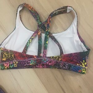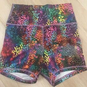 Fleo High Rise Shorts with matching Sport Bra. Size-Small. 4" inseam. With bra pads. Multi-color