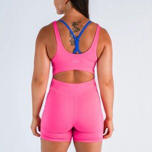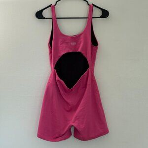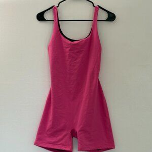 Fleo Women's Open Back Bodysuit Flamingo Pink size M. Only worn once! Great for pilates, barre, weightlifting, running, and fitness competitions. Double lined to hide sweat, and a seamless crotch. Also makes a great base for a Barbie costume!! Very 80s vibes.