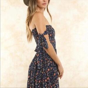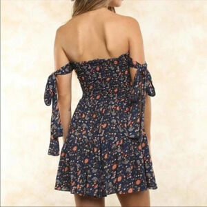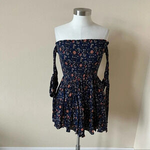 Fletch by Joelle Desert Smocked Floral Mini Dress Size S Navy Blue 14419