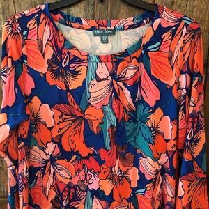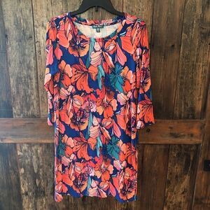 Fleur Bleue M Orange Blue Tiger Lilly Floral Print Relaxed Fit Dress