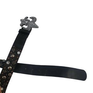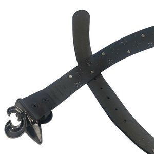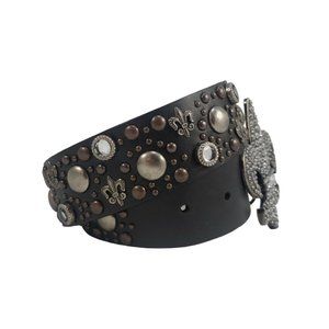 Fleur De Lis Belt Women's S Embellished Rhinestones Studded Glam Rock Chunky