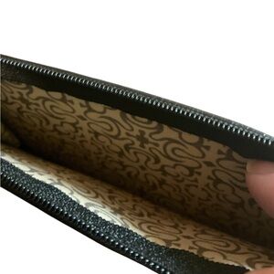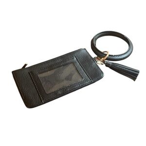 Like new. Functional on the go! It has a zippered main compartment, slots for credit cards, and a window for your ID.