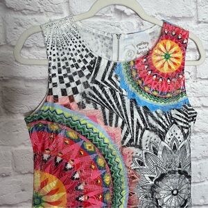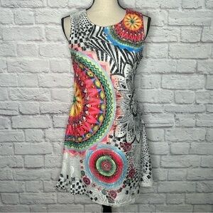Fleur De Lis Mandala Print Lace Overlay Shift Dress