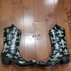 Fleur Di Lis Rubber Rain Boots Wms Sz 9