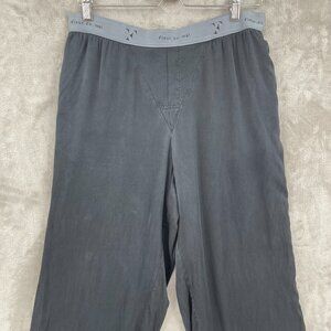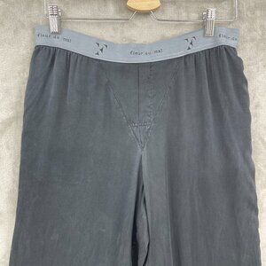 Fleur du Mal silk pull on pajama/ lounge pants in black with gray elastic waist band. Slash pockets at hips. Machine washable. Size M. Please see photos for measurements.