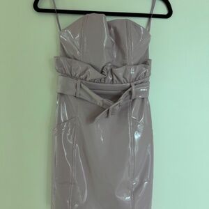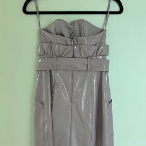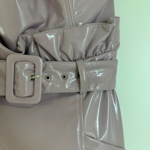 Fleur Du Mal Wisteria Purple Strapless Ruffle Belted PVC Latex Mini Dress Size 0