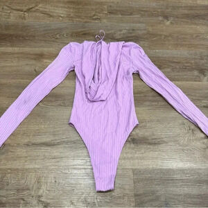 Fleur Du Mal Ribbed Knit Hoodie Bodysuit In Rose Quartz