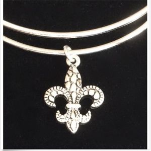Fleur de Lis Charm Bracelet Mardi Gras Nola Saints Vintage Style Silver Plated