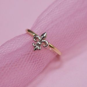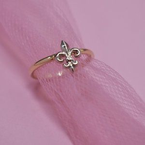 Fleur de lis ring 14K gold, thin ring 6 US, dainty stack ring, basic casual ring