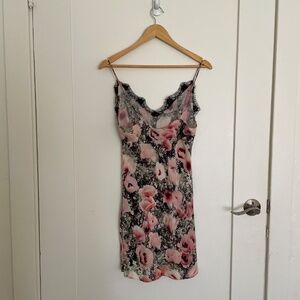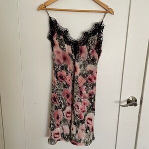 Fleur du Mal Lace Trim Silk Floral Mini Dress Size S