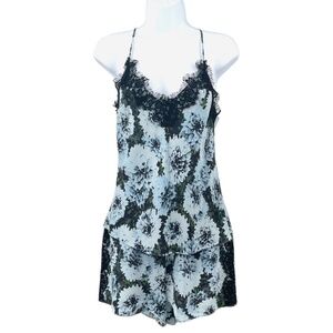 Fleur du Mal Silk Georgette Camisole/PJ Short Set, Blue Floral, Size M