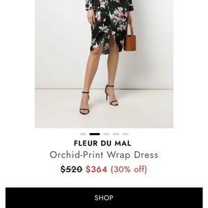 From Website: Black silk orchid-print wrap dress from FLEUR DU MAL featuring all-over floral print, wrap design, front slit, V-neck, long sleeves and mid-length.