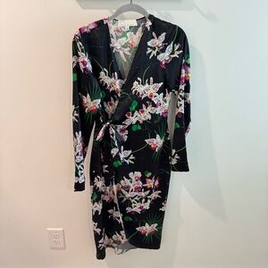Fleur du Mal Stretch Silk Orchid Print Wrap Dress Size Small