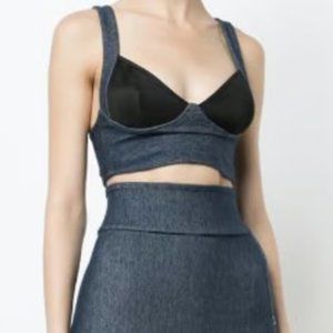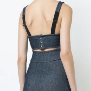 Never worn denim crop top with soft cups in black cotton and back button closure.