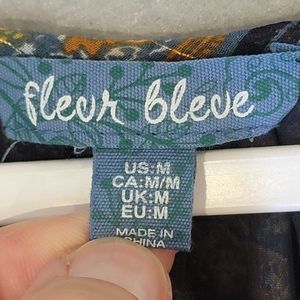 Fleur Bleve Anthro Boho Sheer Puff Sleeve Blouse Womens M Colorful Flowy