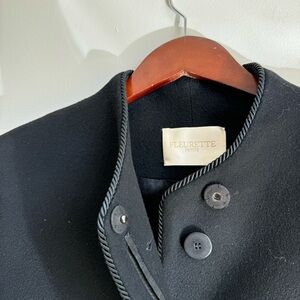 Beautiful coat from Fleurette. Highest quality Loro Piana materials. Color black. Size 10P. Please see pictures with flat lay measurements. For fit / length reference - I am 5’7” wearing the coat in the first picture.