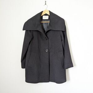 Fleurette black wool cashmere button front wide collar luxe heavy winter coat