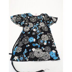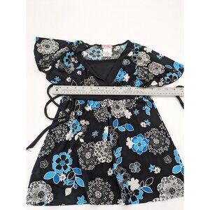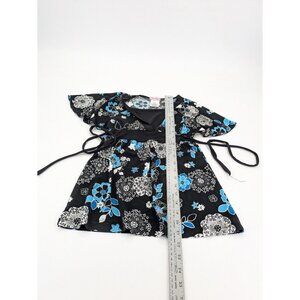 Fleurish Ladies Shirt Size M Ties In Back, Black, White & Turquoise Flower Print