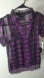 Stylish blouse with purple and black checkered pattern. Features elegant design and comfortable fit. Sheer with tank underneath